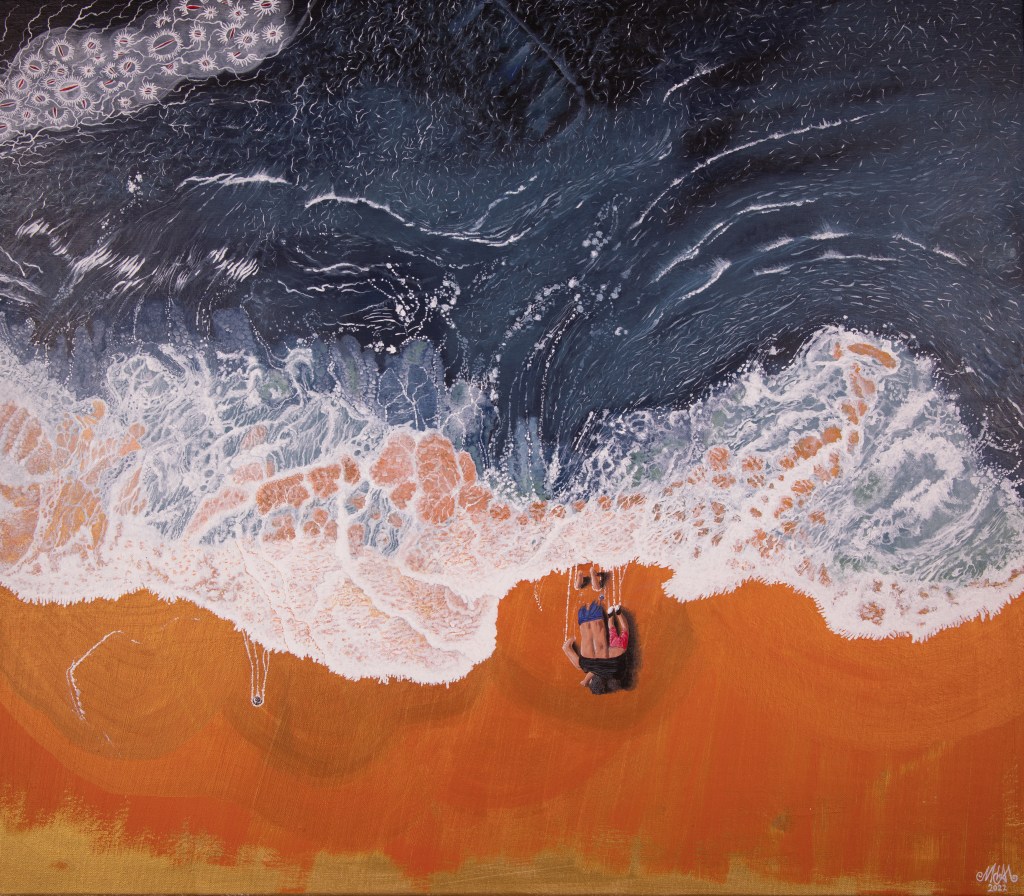 En esta pintura quiero reflejar la desesperación de los migrantes y los peligros que enfrentan en su viaje.
